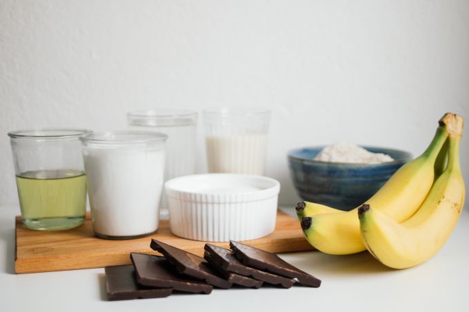 500g Mehl | 1 Pck. Backpulver | 200g Zucker | 350ml Mineralwasser | 200ml pflanzliche Milch | 150ml Rapsöl | 5 EL Kakaopulver | Prise Salz