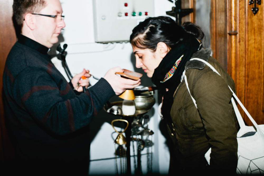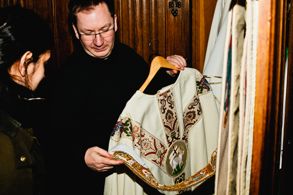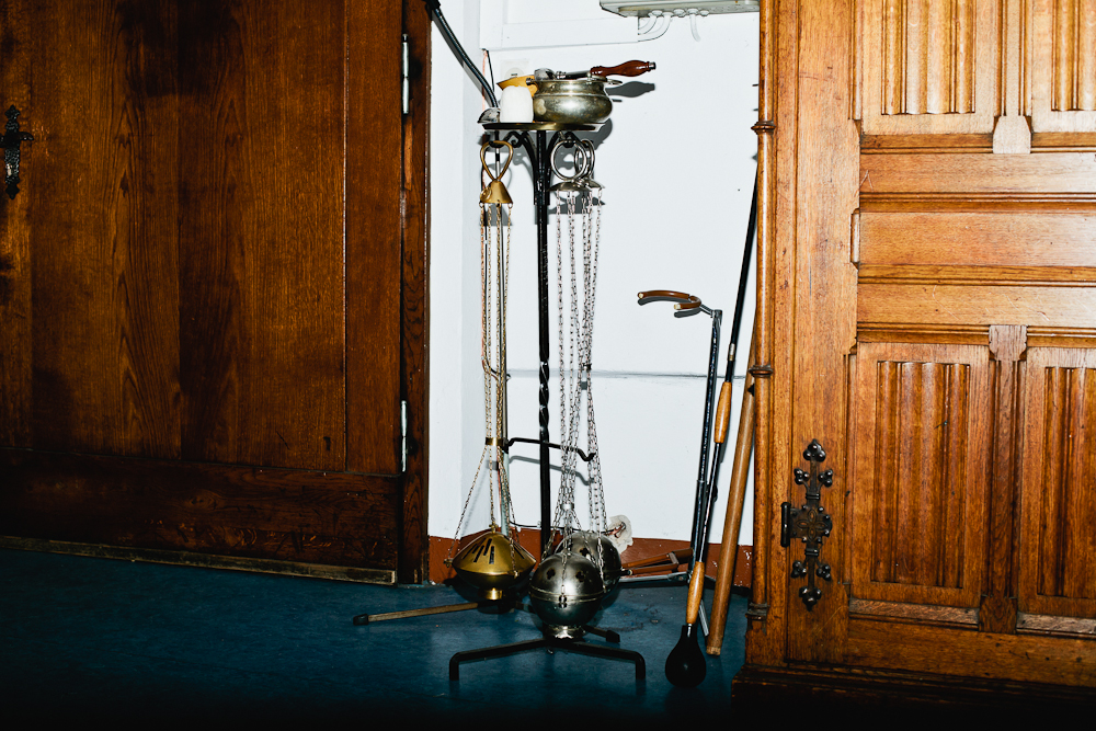 Aber was macht ein Pfarrer, wenn er nicht auf den weißen Nebel und seine Schäfchen wartet? Montags hat dieser hier frei und geht zum Tauchtraining. Und auch seine Urlaube drehen sich um dieses Hobby. Der letzte führte ihn auf die kapverdischen Inseln. Dann liegt auch er mal mit einem Buch am Strand - am liebsten mit einem Mittelalterroman. Auch »Die Wanderhure«? Nein, den Roman noch nicht, aber wenn er spannend sei, warum nicht? Wir erfahren, dass dieser Priester auch gern mal mit Freunden ein Bier trinken geht, »oder Cocktails, Wein...«. Am liebsten Roten. Da hat der Job als Pfarrer auch seine Vorteile: Wenn der eigene Schrank leer ist, kann man sich auch von der Kirche den Messwein ausleihen, »das ist schon erlaubt.« Im Berghain war er noch nie. Als wir ihm von diesem anderen heiligen Ort der Stadt erzählen, wird er sogar hellhörig. Mit seinem schicken römischen Kragen würde er vermutlich sogar am Türsteher vorbeikommen.