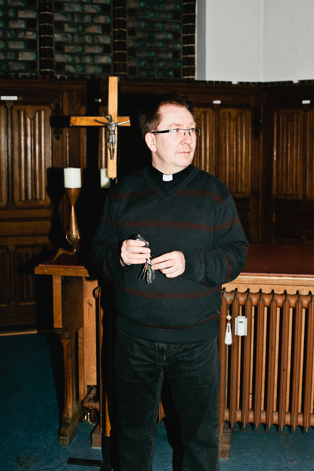 In einer katholischen Kirche gibt es auch im «gottlosen» Berlin täglich einen Gottesdienst. Aber auch die alte Tante Katholizismus richtet sich nach ihren Schäfchen: Pfarrer Cornelius feiert einmal in der Woche eine »After Work«-Messe für Berufstätige. Und zu gebrechlichen Senioren düst er auch schon mal mit dem Rennrad. Ihm geht es vor allem darum, da zu sein. Das bedeutet auch soziale Arbeit zu leisten. »Hier klopfen immer wieder Leute an und sagen: ›Ich kann nicht mehr‹«. Darunter fällt alles: von finanzieller Not, über Probleme mit Behörden bis hin zu Lebenskrisen. Wer an seine Tür klopft, dem will Pfarrer Cornelius versuchen zu helfen. »Die sind gar nicht immer unbedingt katholisch, die Leute.« Ob katholisch, Muslim oder Atheist, zugehört wird erst einmal jedem. Auch den Nachbarn schräg gegenüber vom Schwuz. »Jeder, der Sorgen hat, kann gerne vorbeikommen. Ob wir dann immer so mit der Überzeugung harmonieren...« Cornelius beendet den Satz mit seinem typischen Wippen und seinem süffisanten Lächeln. Wir lachen mit. Dieser Pfarrer ist gut drauf.