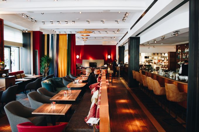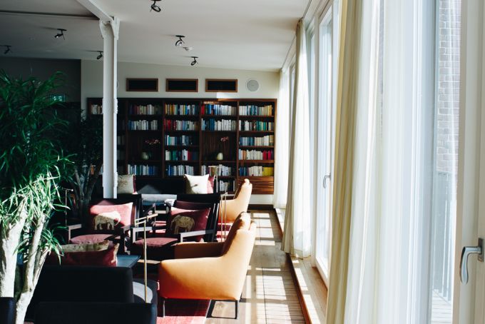 Im Leseraum angekommen, erzählt mir Nora auch, dass hier künftig regelmäßig Lesungen in Zusammenarbeit mit der Buchhandlung von gegenüber stattfinden werden, genauso wie Konzerte in der Bar im Erdgeschoss. Bei beiden Eventreihen achte man sehr auf Lokalität, denn es sollen nur Berliner Musiker auftreten, die sich zwischen Klassik, Jazz aber auch Elektronischem bewegen. Müller-Elmau hofft dabei natürlich auch, die Kreuzberger in sein Hotel zu locken, denn nicht nur die Konzerte sind für alle frei zugänglich, sondern auch die Bar und das Restaurant – wobei ein Blick auf die Karte und die Preise dann doch schnell in Erinnerung ruft, dass man sich hier eben nicht in einem Motel One, sondern einem nicht ganz günstigen Boutiquehotel befindet.