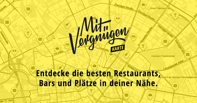 Du bist auf der Suche nach den besten Bars, Cafés und Restaurants Berlin? Mit der Mit Vergnügen Karte kannst du auf deinem Handy in deiner Umgebung nach dem nächsten Restaurant suchen. Wir geben dir Tipps, wo es besonders lecker und schön is(s)t. Lasse kein Restaurant in Berlin unentdeckt und gehe nie wieder hungrig nach Hause.