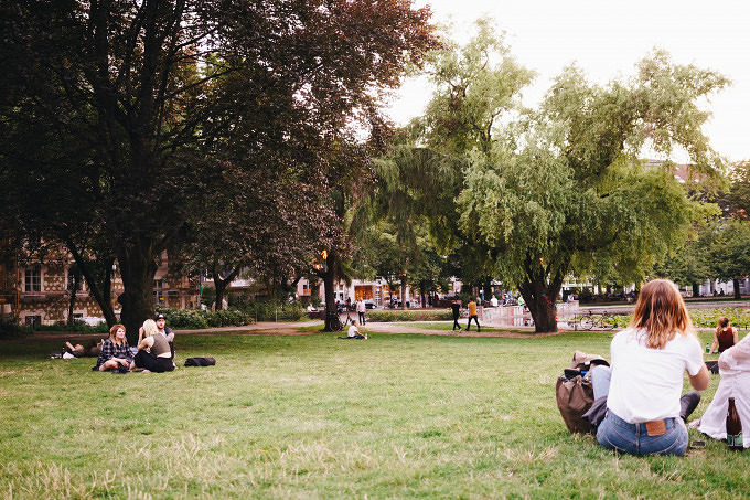 In Mitte gibt es nur wenige Grünflächen. Eine davon ist der Volkspark am Weinberg. Der Park hat trotz der kleinen Fläche einiges zu bieten: Rosengarten, Spielplatz, Schweizer Restaurant inkl. großer Terrasse, Sportplätzn und den mit Seerosen bewachsenen Teich unterhalb der Liegewiese. Wir verbringen hier gerne mal unsere Mittagspausen oder Feierabende, setzen uns am Wochenende mit Freunden und Picknickdecke auf die Wiese, schlendern durch den Park oder schauen verträumt auf den Teich und blenden dabei die vielbefahrene Brunnenstraße im Hintergrund gekonnt aus. Heute setzen wir uns mit einem Buch, den Resten der Zimtschnecke und einem Kaffee auf die Wiese und machen eine kurze Pause.