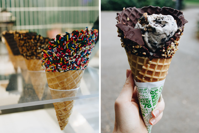 Eis in hausgemachten Waffeln, Kuchen, Sundaes und mehr im Ben & Jerry’s Scoops & Café