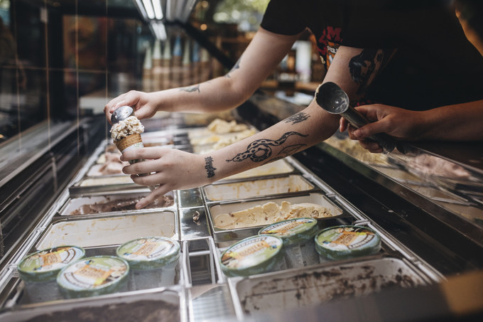 Euer Freezer ist voll mit Eisbechern von Ben & Jerry's und es gibt eigentlich keinen Tag (im Sommer), an dem ihr nicht mit dem Löffel Richtung Kühlschrank lauft und eurer Eisschwäche nachgeht? Dann hergehört: Im Juli 2019 hat im Weinbergsweg Deutschlands erstes Ben & Jerry’s Scoops & Café eröffnet. In dem Café könnt ihr euch nicht nur Pints selbst zusammenstellen, sondern auch Eiskugeln in hausgemachten Waffeln, auf Brownies oder zwischen Cookies essen. Das Café kann außerdem als Konferenzraum gebucht werden – inklusive Icecream – und wird als Community Hub von NGOs wie Give Something Back to Berlin und der Flüchtlingshilfe Start with a Friend genutzt wird.