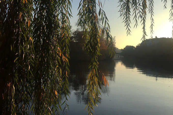 Im Anschluss empfehle ich euch einen Spaziergang am Bundesratufer. Das ist eine meiner absoluten Lieblingsstrecken, die bisher jeden meiner Besucher begeistert hat. Wer an Moabit denkt, hat meistens eher keine romantische Vorstellung im Kopf, der Uferweg ist aber ein wirklich entspannter Ort, der perfekt für den spießigen Sonntagsspaziergang ist. Der Weg führt die ganze Zeit direkt am Wasser entlang und ist umsäumt von Bäumen, die in den warmen Monaten den Weg begrünen und Schatten bieten und im Winter mit dem von Raureif überzogenen Blattwerk eine tolle Kulisse fürs (fotografische) Auge bilden. Bei schönem Wetter suche ich mir hier immer eine Parkbank aus, um entspannt ein paar Seiten zu lesen. Im Anschluss laufe ich gerne von hier aus das ganze Ufer entlang, vorbei am Schloss Bellevue (ab hier wird es etwas belebter) bis ins Regierungsviertel und zurück.