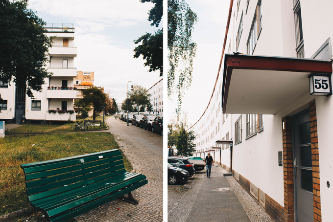 Weiter geht's auf unserem Kiezspaziergang durch die Großsiedlung Siemensstadt, die seit 2008 zum UNESCO-Weltkulturerbe gehört. Die zwischen 1929 und 1931 erbaute Wohnanlage befindet sich zum größten Teil im Berliner Ortsteil Charlottenburg-Nord und steht in der Tradition des Neuen Bauens, einer Architekturbewegung, die in den 1910er bis 1930er Jahren ihre Blütezeit erfuhr. Die Grundidee lautete bereits damals: den Siemensmitarbeiter*innen kostengünstige Wohnungen in unmittelbarer Nähe ihrer Jobs zur Verfügung zu stellen. Deshalb findet ihr in diesem Kiez auch bis heute alles, was man zum Leben braucht – von der Bäckerei über den Waschsalon oder die Goldschmiedewerkstatt bis hin zum Gemüseverkäufer eures Vertrauens um die Ecke. Kiezleben at its best!