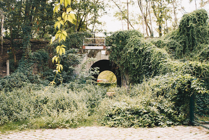 Während unseres Rundgang laufen wir immer wieder unter einer S-Bahntrasse her. Stefan erklärt uns, dass es sich hierbei um einen der bekanntesten "lost places" Berlins handelt und zwar die alte Siemensbahn, die vor vierzig Jahren das letzte Mal durch Siemensstadt fuhr. Seitdem hat die Natur sich hier ihren eigenen Weg gesucht, die alten Bahngleise sind inzwischen ziemlich verrostet und zugewuchert. Andererseits ist die in die Jahre gekommen Bahntrasse eben auch ein Dokument der spannenden Geschichte dieses Ortes. Das Betreten der Gleise ist leider verboten, aber mit der Fertigstellung der Siemensstadt 2.0 bis zum Jahre 2030 soll die Bahn wieder in Betrieb genommen werden. C'est cool!