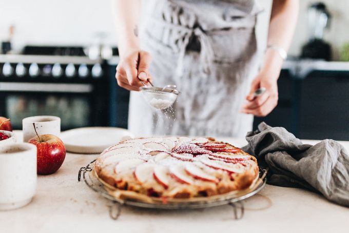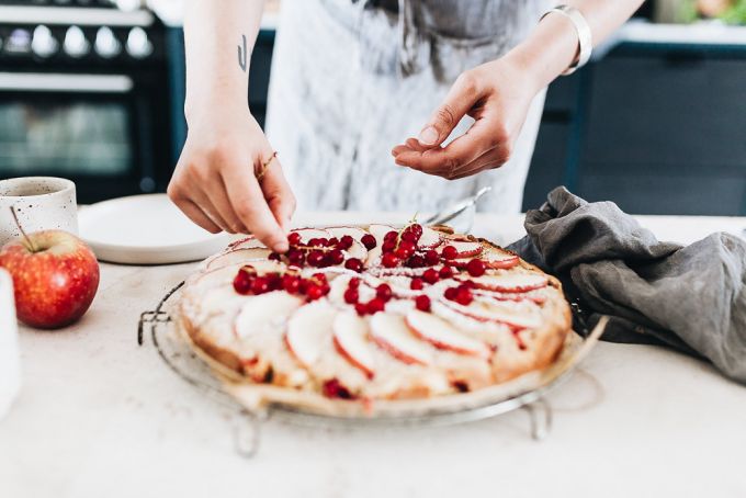 Auf Instagram haben Laura & Nora über 970.000 Follower und neben Our Food Stories noch einen zweiten Account. Auf Design Tales dreht sich alles um Design, Möbel und Einrichtung, neben Essen ihre zweite Leidenschaft. Wir haben uns in ihrem Studio getroffen, mit den beiden Hunden gespielt und uns mit den Foodbloggerinnen unterhalten. Zu essen gab's einen leckeren Apfel-Beeren-Kuchen, den Nora für uns gebacken hat. Kommt rein und schaut euch um!