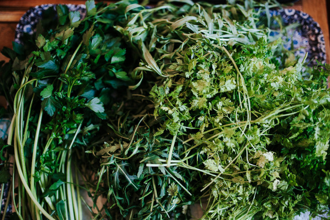 In der iranischen Küche kocht man mit sehr sehr vielen frischen Kräutern wie Petersilie, Koriander, Dill, Kerbel und Zitronenmelisse sowie sehr vielen Gewürzen. Außerdem verwendet man Zutaten wie Rosenwasser, Orange Blossom Water, Safran, Berberitzen, Datteln und Verjuice, ein Saft unreifer Trauben.