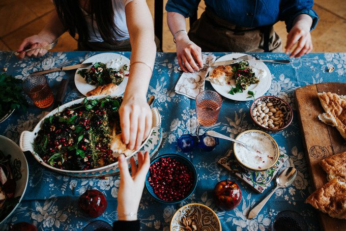 Wir haben das Gefühl, dass in Deutschland Essen eher eine Sache der Notwendigkeit ist. Man isst, um sich zu ernähren und um sich zu sättigen. In der iranischen Kultur ist Essen eher ein Fest der Sinne. Bei jedem Essen gibt es unterschiedliche Gerichte, bei denen viele verschiedene Konsistenten miteinander kombiniert werden. Zum Beispiel Reis mit Kruste, dazu frischer Joghurt und frische Kräuter. Außerdem wird es immer "family style" serviert, dass heißt alle nehmen sich so viel oder so wenig, wie sie wollen. Unsere Tür stand für jeden offen, wer wollte kam zum Essen und es gab immer irgendwie genug. Gastfreundschaft ist wahnsinnig wichtig.