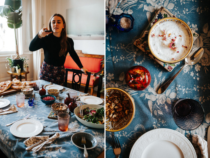 Altbau, Stuck, Parkettboden und orientalische Möbel – so prachtvoll hatten wir es bisher noch nicht, wir waren aber auch noch nie in Charlottenburg. Sophie und Xenia sind die kreativen und fleißigen Köpfe und Hände hinter der fabelhaften (und leider nicht mehr laufenden) Brunch-Reihe Das Brunch und den Persian Feast-Events, die in keinem unserer kulinarischen Guides fehlen duften. Auf die Frage, ob es in Berlin ein gutes persisches Restaurant gibt, gab es von denen beiden ein synchrones "Nein" als Antwort. Vielleicht ändert sich das ja bald.