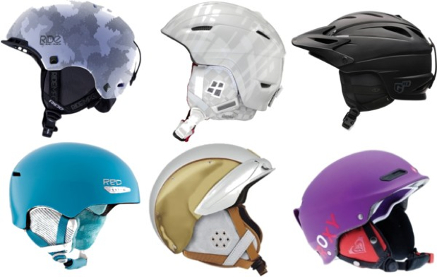 Helm Ninja über ridesnowboards.com, weiß gepanzert über sportcheck.com, schwarzer Giro G10 MX über rei.com