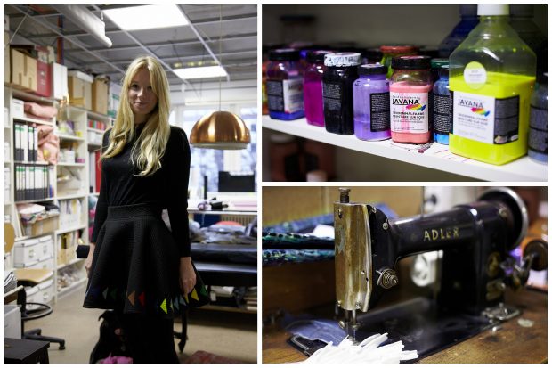 Dritter Advent. Schneematschregensuppe in der Alten Schönhauser Straße in Mitte. Ich warte vor dem Atelier und schiebe etwas nervös meinen Reißverschluss an der Jacke hoch und runter. Beim googeln fand ich düstere Bilder des Designerduos von Starstyling. Ernsthafte Interviews, in denen es um avantgardistische Schnitte und die Auseinandersetzung von Kunst und Mode in fast 10 Jahren Designergeschichte geht. Wird Kai sehr genervt sein, dass wir ihn am heiligen Sonntag zu einem Interview quälen und ihm dann auch noch vorschlagen, auf den Weihnachtsmarkt zu gehen? Er wird schon Humor haben, denke ich, immerhin steht Starstyling für fröhliche Farbenpracht, Extravaganz und schillernde Kreationen. Pünktlich schreitet er von der Straße auf mich zu. Wir begrüßen uns herzlich. Er klingelt, es summt, wir stehen im beeindruckend bunten, aber verdächtig geordneten Atelier. Factoryathmosphäre knallt mir entgegen.