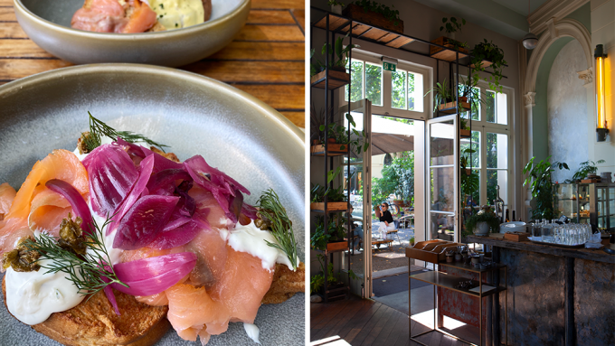 Direkt neben dem stylischen Kink findet ihr das frank. Die Location ist, genauso wie bei der großen Schwester, atemberaubend schön und cool und hat so viel Brooklyn-Vibes, dass es sich fast wie Urlaub anfühlt. In das frank sollen die Gäste einfach reinstolpern, sich zum Feierabendspritz und am Wochenende zum Breakfast Toast mit Lachs, knusprigem Chicken oder frischen Beeren treffen oder mit einem Cappuccino lesend auf den selbstgebauten Möbeln chillen. Im Winter sitzt man zwischen vielen Pflanzen, im Sommer auf der Terrasse unter riesigen Bäumen und will nur ungern wieder gehen.