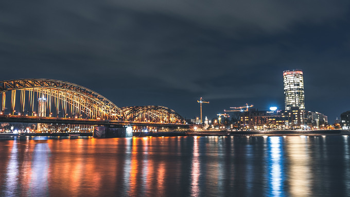 Eine Stadt am Fluss ist immer etwas Feines. Über die Deutzer Brücke kommt ihr von der Altstadt und vom Hauptbahnhof rüber zur Messe, also nach Deutz. Besondern spätabends, wenn alle Touristen schon mit schweren Füßen im Bettchen liegen, habt ihr die Brücke fast für euch alleine und einen gigantisch schönen Blick auf Köln, den Rhein, den Dom und all die schönen Lichter.