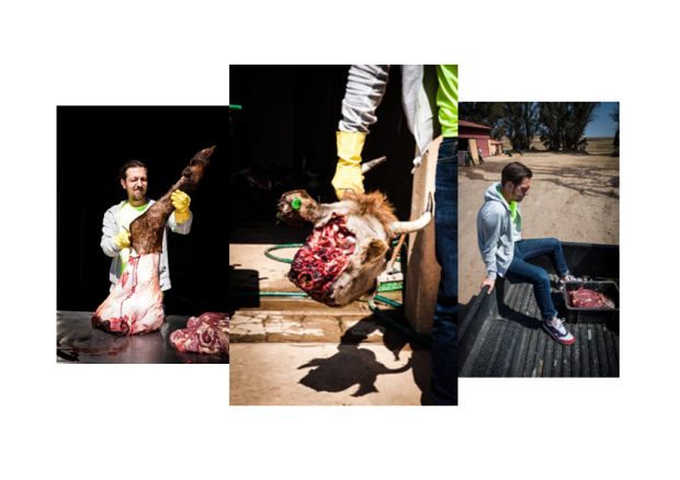 Ich ekle mich noch mehr vor der gelbbraunen Flüssigkeit in meinem Handschuh. Die Fotografin macht Würgegeräusche beim Fotografieren. Sture Sehnen werden zerschnitten. Beine abgetrennt. Ich frage vorsichtig.