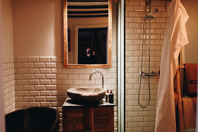 Alle der 81 Zimmer im Lulu Guldsmeden haben hohe Wände und Deckenstuck, wie man ihn auch aus Berliner Altbauwohnungen kennt. Wir dürfen für ein Wochenende in eine der Loftsuiten ziehen. Unverputzte Backsteinwände, warmes Holz, dunkles Leder und angenehmes Licht sorgen für Wohlfühl-Atmosphäre. Auf dem Zwischenboden sind extra Schlafplätze, falls man mit Kindern reist, darunter stehen Schreibtisch und Kleiderschrank. Auf Nachfrage kann man sich auch eine Schaukel in den Rahmen hängen. Wer im Lulu Guldsmeden wohnt, schläft in Himmelbett aus Bambusholz. In unserer Suite gibt es außerdem gemütliche Chesterfield-Sitzmöbel und ein Badezimmer mit ebenerdiger Dusche und freistehender Badewanne. Wer Shampoo, Duschgel und Co. zu Hause vergessen hat, ist hier gut versorgt. Im Bad gibt es nachhaltige Pflegeprodukte für Haut und Haare, Körperöl und Handcreme inklusive.
