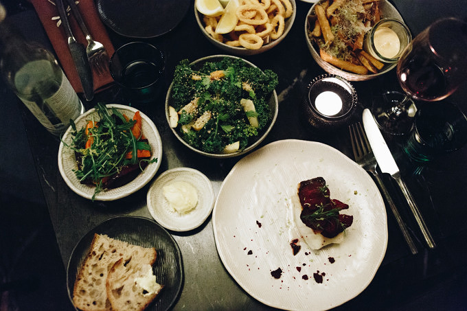 Schon bevor das Hotel offiziell eröffnet wurde, konnte man in dem Hotelrestaurant Saeson essen. Wir waren damals auch dort und haben die leckeren Smørrebrød gegessen. Seit dem ist viel passiert. Chefkoch René Beck-Hansen hat das Restaurant verlassen, heute hat eine Frau das Sagen in der Küche vom Saeson. Anstelle der belegten Brote – vielen der Gäste und Berliner war das Konzept vielleicht ein wenig zu nordisch – gibt es heute internationale Küche. Auf der Karte stehen Gerichte wie Rote Beere Carpaccio mit Ziegenkäsecreme, gebratener Kabeljau aus Island, Burger mit Havelland-Rindfleisch, Grünkohl-Apfel-Salat oder Brownies mit Eis. Letzteres kommt von Rosa Canina, Sauerteigbrot und Brownies sind von The Bread Station aus Neukölln. Für die Gerichte werden ausschließlich saisonale Bio- und Fair-Trade-Produkte von regionalen und nachhaltigen Anbietern verwendet.